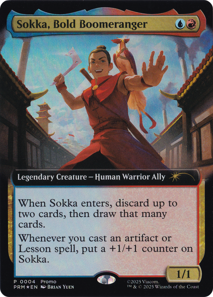 Whenever you cast an artifact or Lesson spell, put a +1/+1 counter on Sokka.
