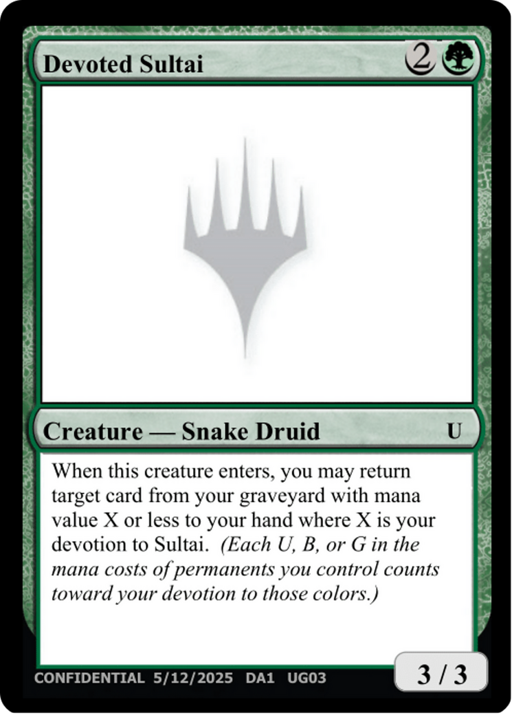 When this creature enters, you may return target card from your graveyard with mana value X or less to your hand where X is your devotion to Sultai. (Each ,