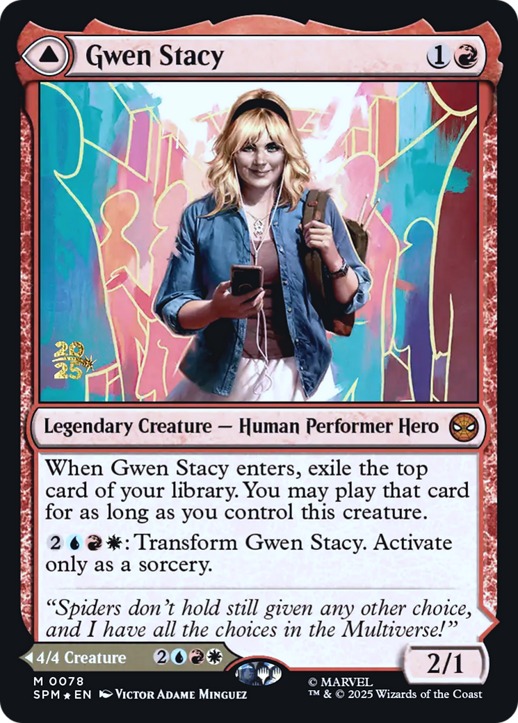 When Gwen Stacy enters, exile the top card of your library. You may play that card for as long as you control this creature.